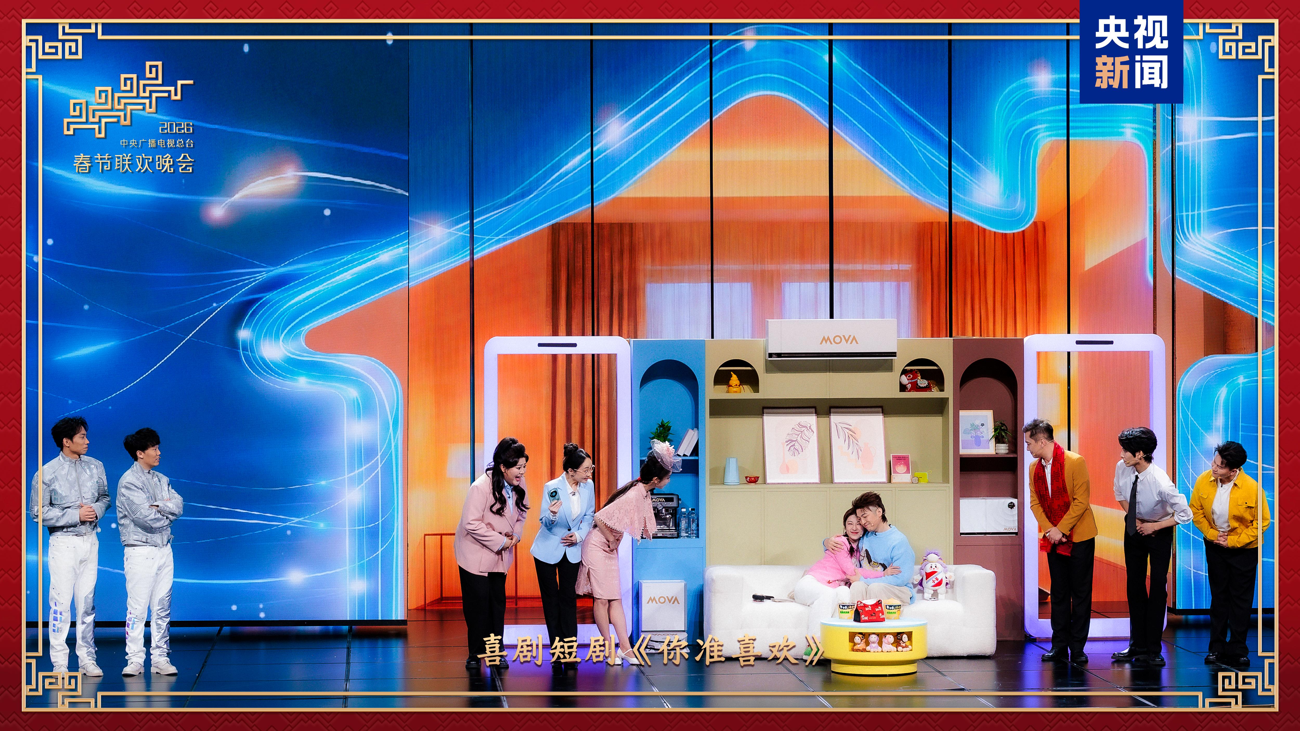 蔡明與王天放帶來小品《奶奶的最愛》,聚焦機(jī)器人融入家庭生活場(chǎng)景,笑聲與誤會(huì)交織中藏著祖孫間最真摯的愛與惦念。喜劇短劇《你準(zhǔn)喜歡》用輕松詼諧的方式演繹數(shù)字時(shí)代“越刷越上頭”的狀態(tài),引發(fā)對(duì)社交媒體產(chǎn)品“有意思”和“有意義”的思考。