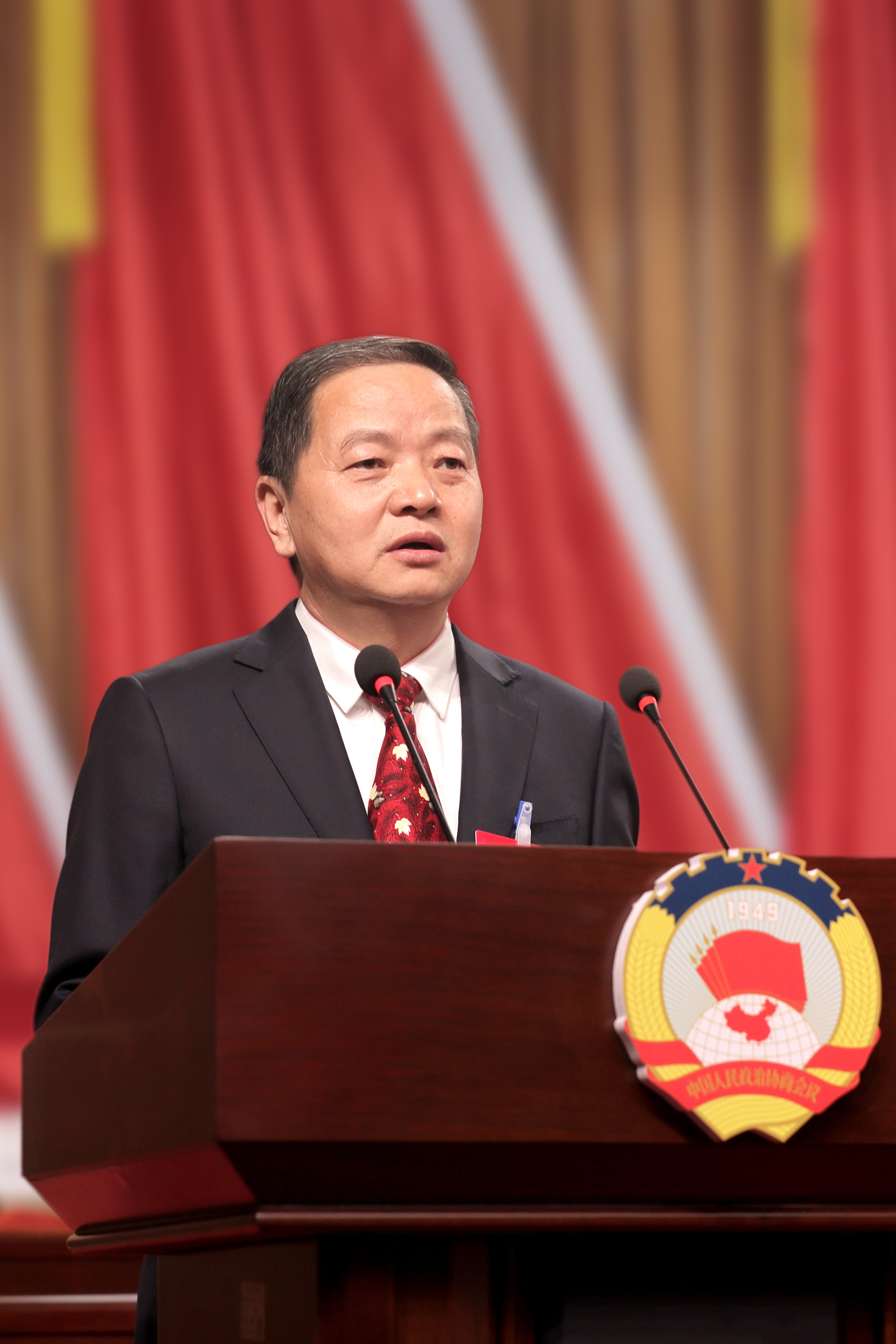 市政協(xié)主席周建功代表政協(xié)安康市第五屆委員會常務(wù)委員會作工作報(bào)告。記者 潘潤生 攝
