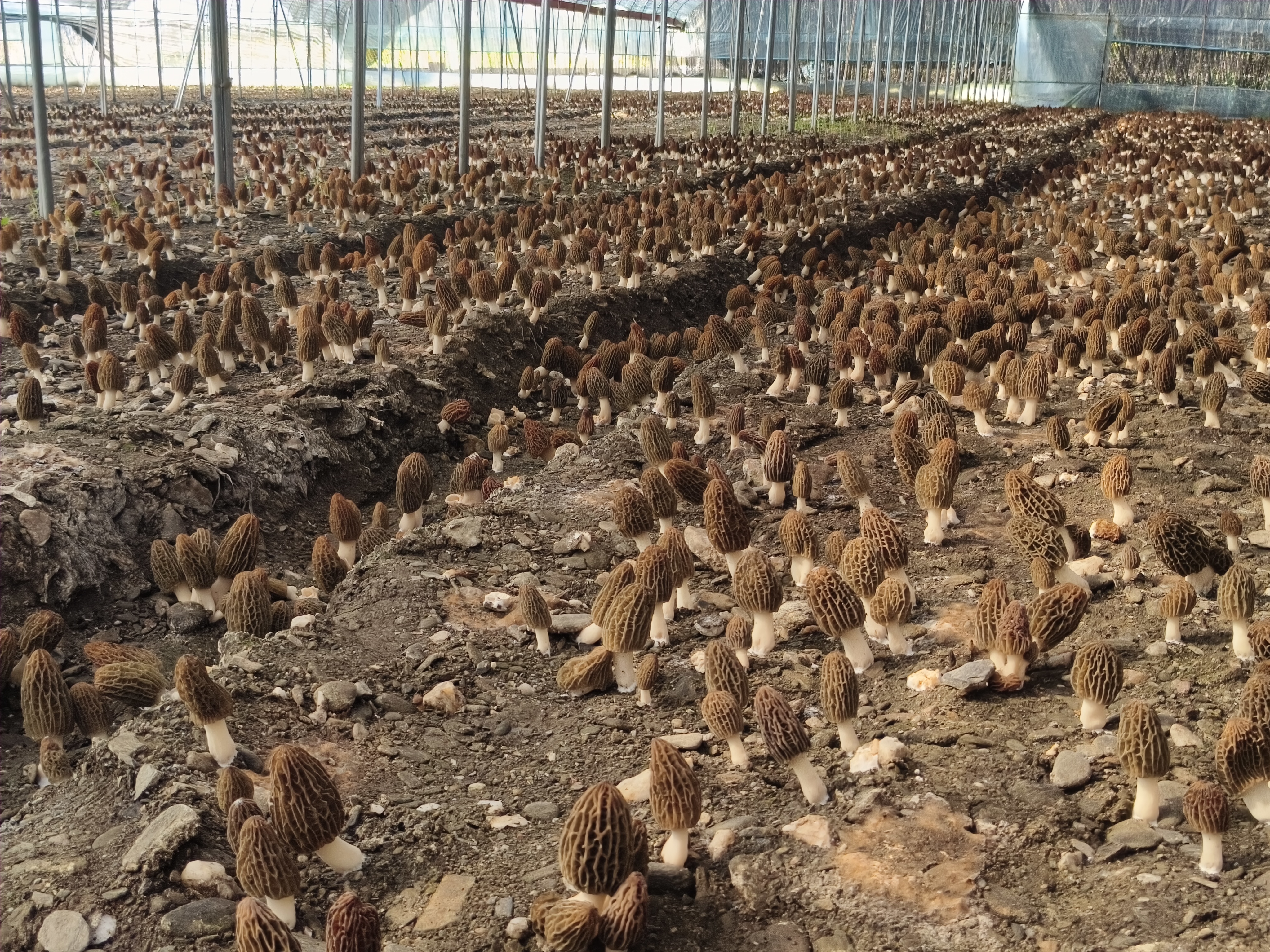 種植基地內(nèi)羊肚菌長(zhǎng)勢(shì)喜人
