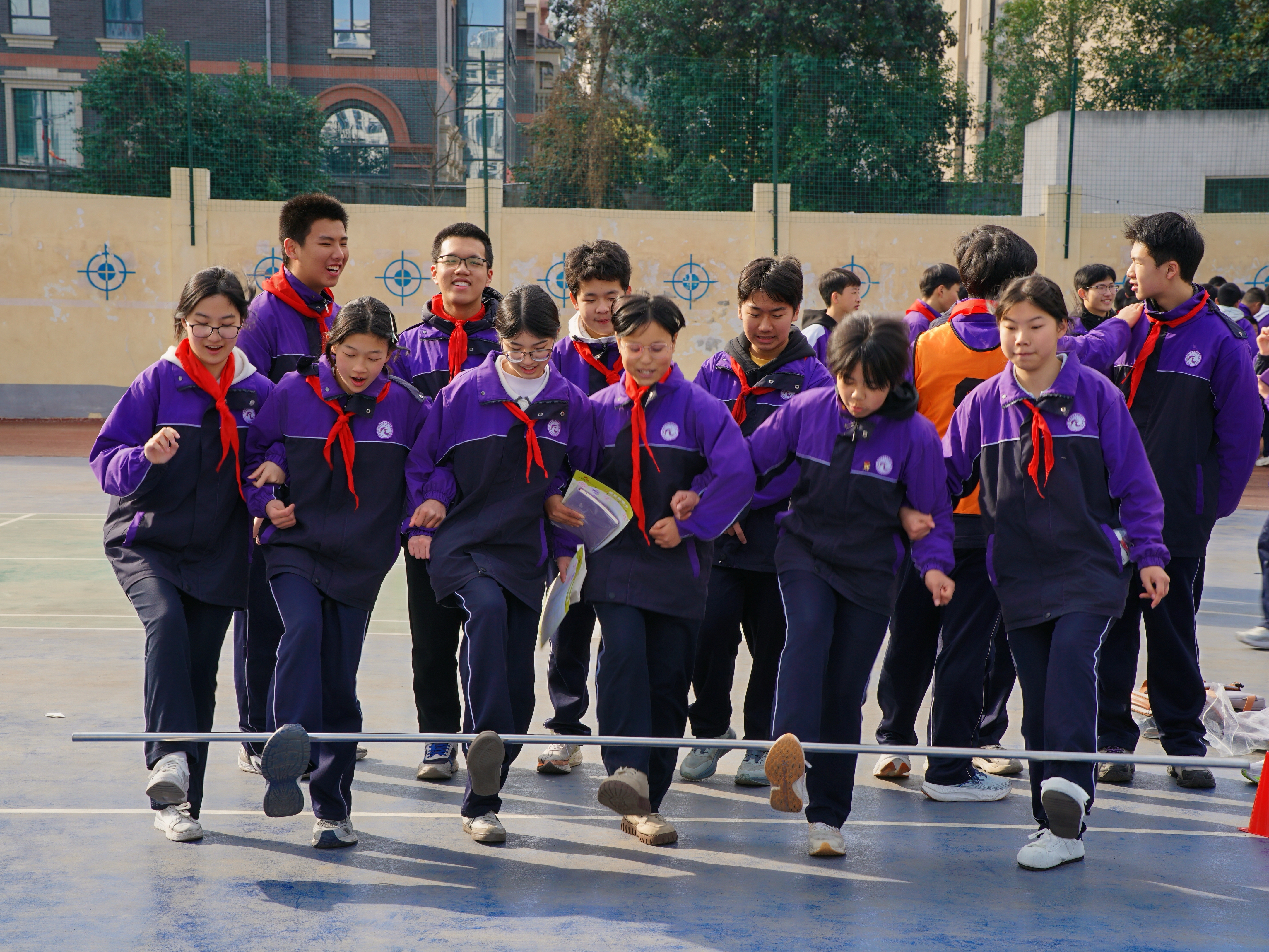△ 安康中學(xué)教育集團初中部游園會活動中,學(xué)生們參加協(xié)作跳躍項目。馬黎明 攝