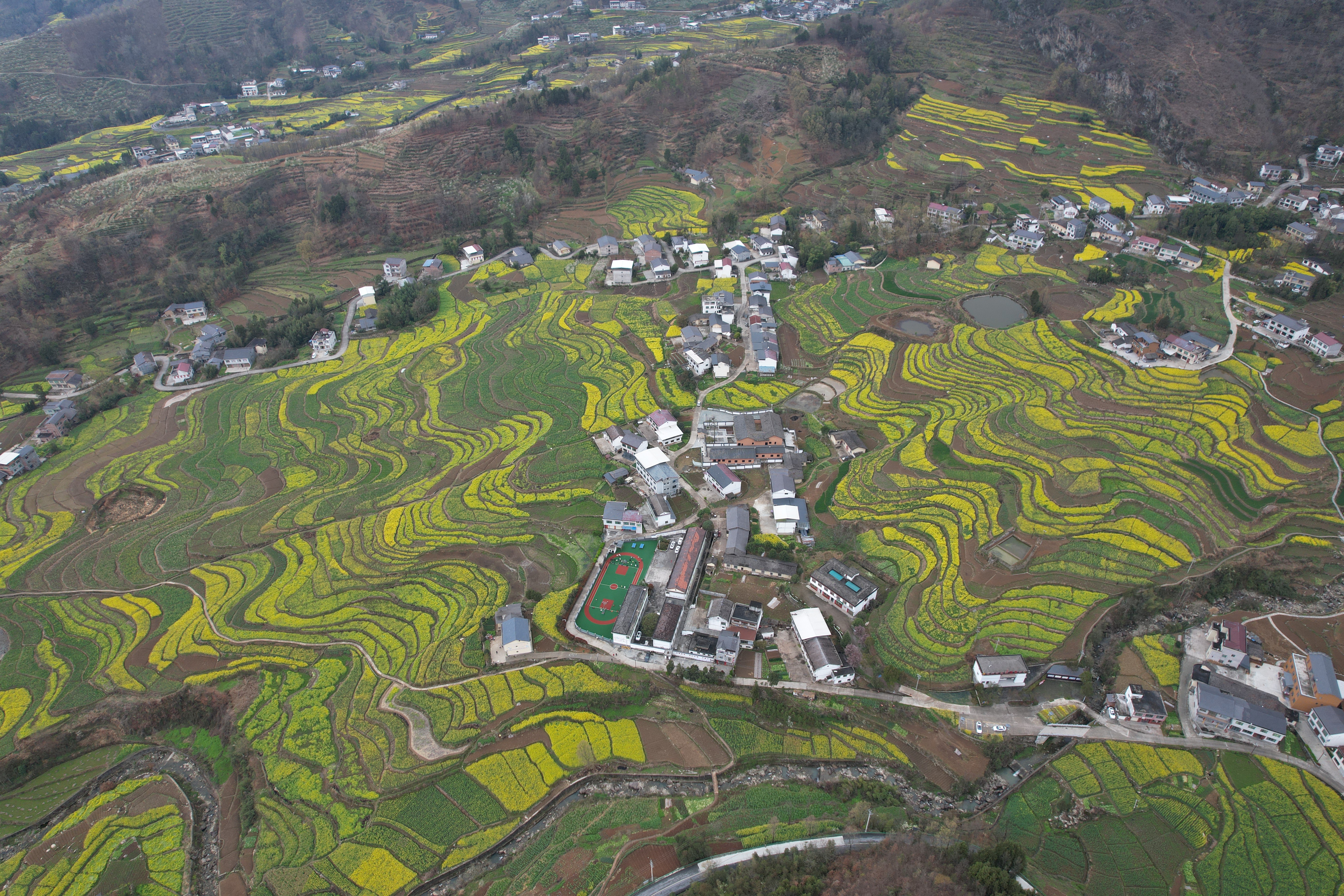 初春時節(jié),秦巴腹地春意盎然。如果說漢陰的春天有顏色,那一定少不了油菜花的那抹明黃,而其中又以鳳堰梯田為最。作為世界灌溉工程遺產,漢陰縣鳳堰古梯田萬畝油菜花次第綻放,層層疊疊的金色花海與錯落梯田、青山村落相映成畫,景區(qū)迎來春季旅游高峰,八方游客紛至沓來,共赴這場春日田園之約。