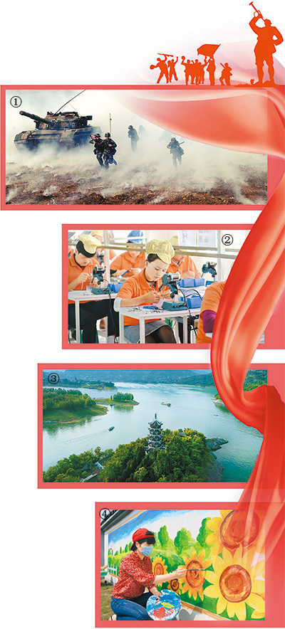其中“從站起來(lái)、富起來(lái)到強(qiáng)起來(lái)的歷史性飛躍”的論斷,既簡(jiǎn)明扼要地概括了近代以來(lái)中國(guó)實(shí)現(xiàn)飛躍的歷史進(jìn)程,又深刻揭示了中國(guó)特色社會(huì)主義不斷開(kāi)辟發(fā)展新境界的歷史意義。其背后,則是中國(guó)人民創(chuàng)造幸福生活、一步步實(shí)現(xiàn)“中國(guó)夢(mèng)”的生動(dòng)實(shí)踐。