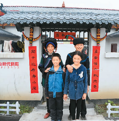 | 東西部扶貧協(xié)作推動區(qū)域協(xié)調發(fā)展。圖為6月19日四川涼山州申果鄉(xiāng)達布村貧困戶阿牛爾鐵一家在易地搬遷后的新居前合影。 |