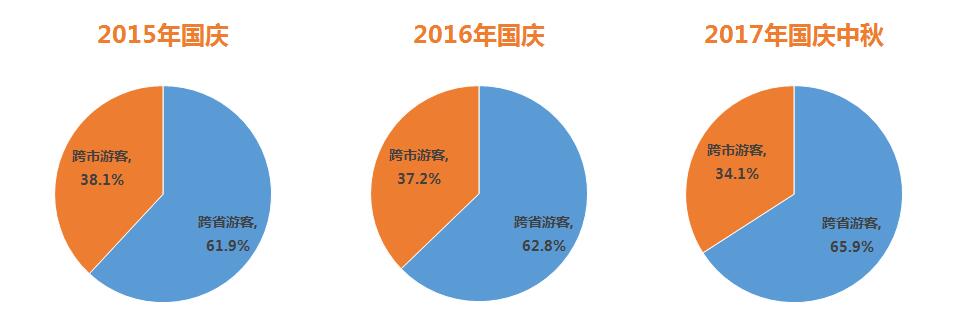 今年國慶、中秋連休形成八天超級假期,激發(fā)了居民的中長線出游熱情,游客中跨省游客人數(shù)較前兩年呈上升趨勢,占比達近三分之二。