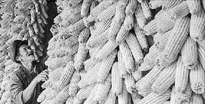 重慶市黔江區(qū)阿蓬江鎮(zhèn)柒坨村村民在晾曬玉米。 新華社發(fā)
