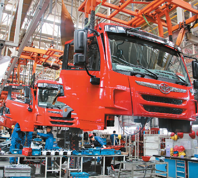 | 青島一汽解放下線(xiàn)的整車(chē)。 |