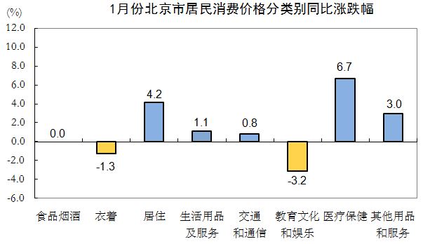 1月份,北京市居民消費價格總水平環(huán)比上漲0.4%。其中,食品價格上漲2.0%,非食品價格上漲0.1%;消費品價格上漲0.6%,服務(wù)價格上漲0.1%。
