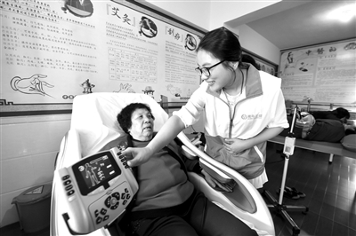 保險業(yè)內(nèi)人士分析認(rèn)為,伴隨民眾保險意識的不斷提升,“醫(yī)療+重疾”的商業(yè)保險保障有望成為越來越多保險客戶的“標(biāo)配”。這也將為健康險市場轉(zhuǎn)型提供更強(qiáng)勁的動力。圖為3月27日,護(hù)理員在福建省晉江市磁灶鎮(zhèn)大埔村敬老院中醫(yī)康復(fù)室為老人操控按摩椅。 記者 宋為偉 攝