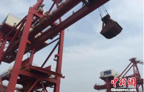 圖為散貨船進行鐵礦砂裝卸作業(yè)。杭州海關(guān)供圖