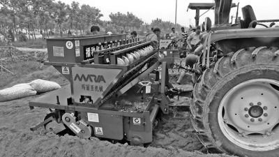 “這一播種機(jī),是由山東農(nóng)業(yè)大學(xué)和瑪麗亞機(jī)械農(nóng)機(jī)等企業(yè)歷時(shí)5年聯(lián)合研制的。通過田間播種效果看,基本上正芽率都在90%以上,非常符合我們山東對(duì)大蒜種植農(nóng)藝的要求。”韓永平說(shuō),“使用智能大蒜精量播種機(jī)每天可播種大蒜50多畝,相當(dāng)于200多個(gè)人的工作量,打破了傳統(tǒng)大蒜播種不能直立、種植效率低的局面,為大蒜機(jī)械化、規(guī);(biāo)準(zhǔn)化種植奠定了堅(jiān)實(shí)的基礎(chǔ)!