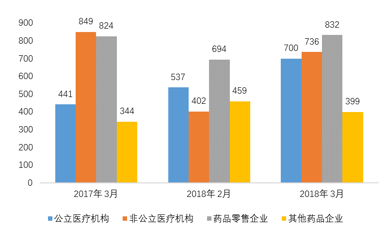從問題分布來看,受理案件主要集中在公立醫(yī)療機構、非公立醫(yī)療機構、藥品零售企業(yè)。其中公立醫(yī)療機構的案件占24.0%,同比上升58.7%,環(huán)比上升30.3%;非公立醫(yī)療機構的案件占25.2%;同比下降13.3%,環(huán)比上升83.0%;藥品零售企業(yè)的案件占28.5%,同比上升0.9%,環(huán)比上升19.8%。