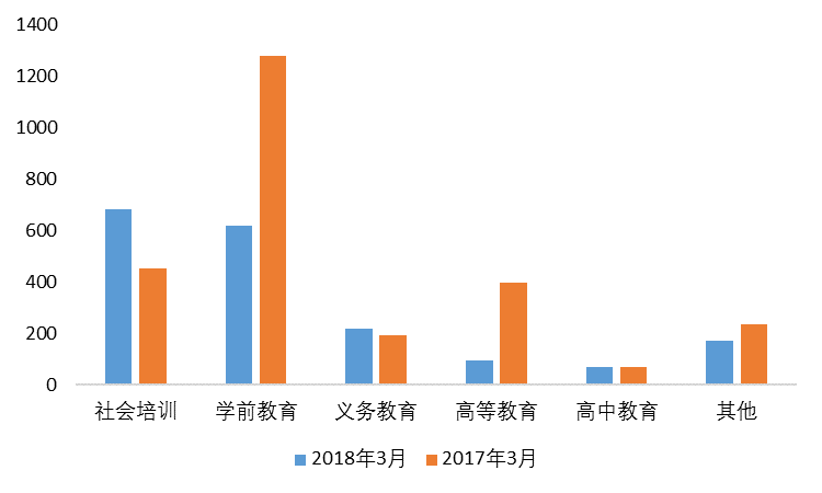 3月各行業(yè)受理同比、環(huán)比變化情況