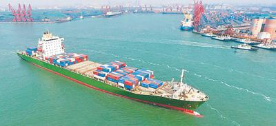 4月9日,一艘輪船駛往唐山港京唐港區(qū)集裝箱碼頭。新華社記者 楊世堯攝