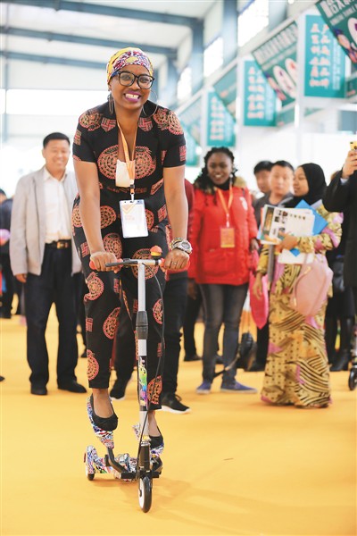 圖為日前在平鄉(xiāng)縣舉辦的國(guó)際自行車童車玩具博覽會(huì)上,一名外商開心地試騎一款兒童腳踏車。