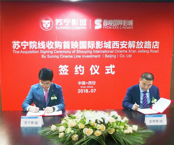 近日,在電影行業(yè)異軍突起、開店頻頻的蘇寧影城再度出手,收購了位于西安最繁華的商業(yè)街區(qū)解放路商圈的首映國際影城,7月11日,正式完成簽約。