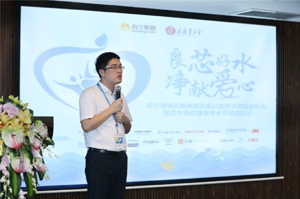 2018年7月10日,蘇寧易購(gòu)聯(lián)合愛(ài)德基金會(huì),在啟動(dòng)夏季凈水節(jié)的同時(shí),正式開(kāi)展“良芯好水 凈獻(xiàn)愛(ài)心”公益助學(xué)項(xiàng)目。7月13日至7月29日,蘇寧易購(gòu)全渠道指定凈水器每賣出1臺(tái),將捐贈(zèng)10元至愛(ài)德基金會(huì),用于資助孤兒大學(xué)生上學(xué)。