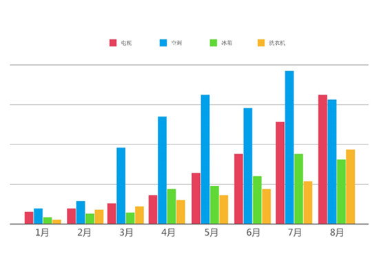 數(shù)據(jù)顯示,相較于1月,8月份凈水器在全國零售云店的銷量增長1390%,洗碗機增長1300%,掃地機器人增長573%,吸塵器增長490%,單反相機增長400%。