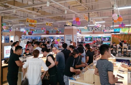 蘇寧大潤發(fā)門店的手機銷售人氣火爆。