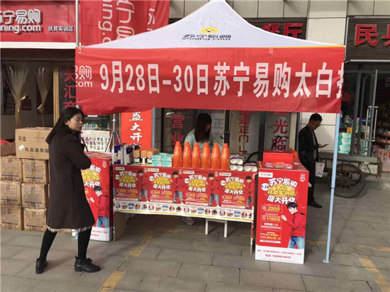 太白電商實訓扶貧店是蘇寧易購在陜西布局的第7家扶貧實訓店,點對點精準扶貧,履行企業(yè)的社會責任,依托自身O2O智慧零售的優(yōu)勢,構(gòu)建精準扶貧長效機制在陜西進行積極的嘗試和探索。一家扶貧實訓店的開始,全年累計為當?shù)嘏嘤栞敵?0人次,共計發(fā)放10.2萬薪資,相當于一年解決了當?shù)?0個貧困家庭。實訓學員在日常工作過程中,可將所在地的特色農(nóng)產(chǎn)品推薦到實訓店,由實訓店進行線上銷售。