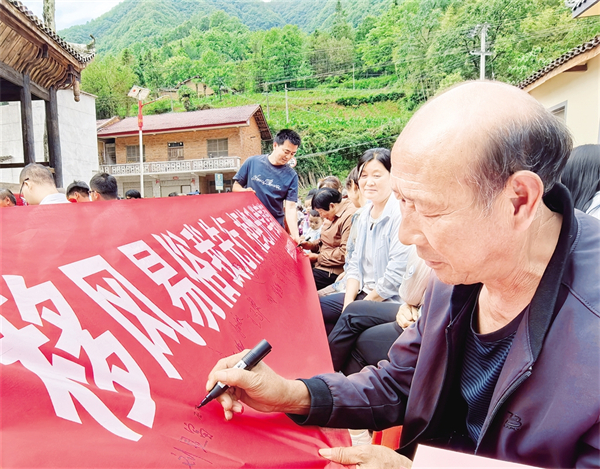 近日,漢濱區(qū)葉坪鎮(zhèn)在慶祝中國共產(chǎn)黨成立104周年活動現(xiàn)場,開展“移風(fēng)易俗我先行 拒絕升學(xué)宴請風(fēng)”簽名和宣講活動。 胡子新 攝