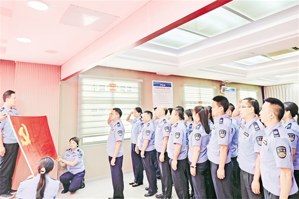 6月26日,紫陽縣司法局組織機關(guān)黨支部黨員、局機關(guān)及下屬單位干部職工開展“重溫入黨誓詞 汲取奮進力量”主題黨日活動。葉明星 攝