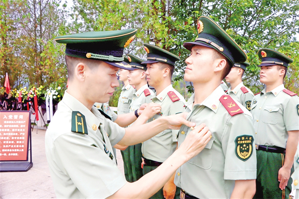 日前,武警安康支隊組織官兵赴平利縣老縣鎮(zhèn)蔣家坪村和牛蹄嶺戰(zhàn)役遺址公園開展形式多樣的主題黨日活動,引導(dǎo)廣大官兵在追尋歷史根脈、接受思想洗禮中堅定“聽黨話、跟黨走”的政治信念。趙坤 陳翔 攝
