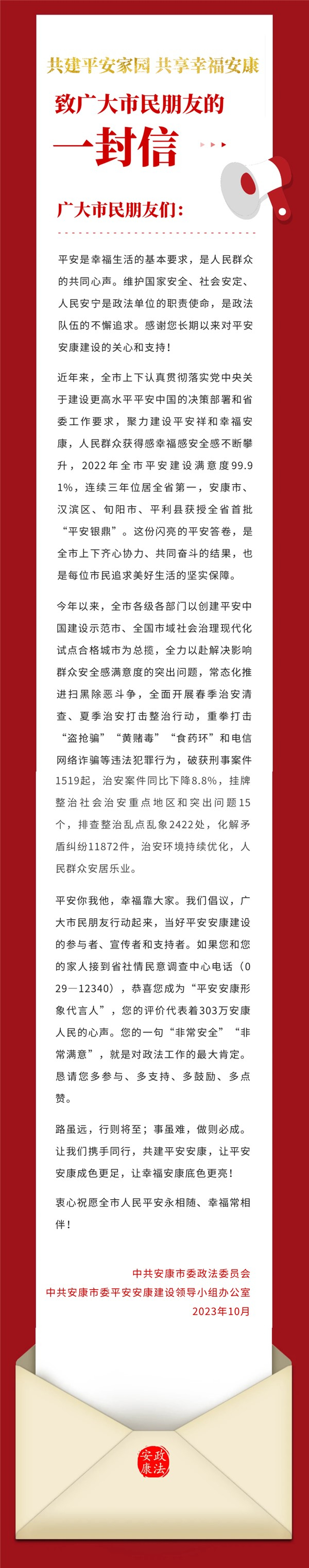 共建平安家園 共享幸福安康——致廣大市民朋友的一封信