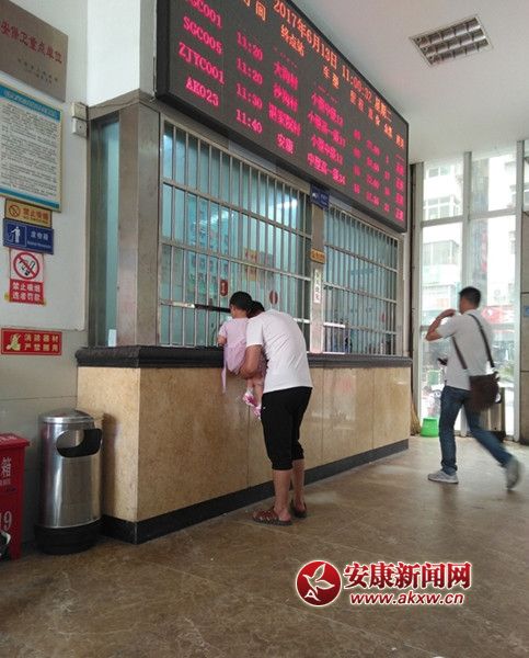 6月13日,旬陽(yáng)縣汽車站一名家長(zhǎng)抱娃咨詢兒童是否符合全票標(biāo)準(zhǔn)。