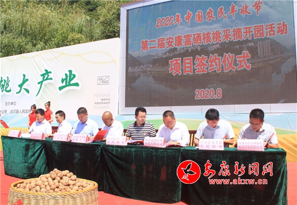 本網(wǎng)訊(記者 吳單 張喬) 8月26日上午,2020中國農民豐收節(jié)·第二屆安康富硒核桃采摘開園活動在白河縣冷水鎮(zhèn)三院社區(qū)舉辦。副市長魯琦出席并宣布活動啟動。