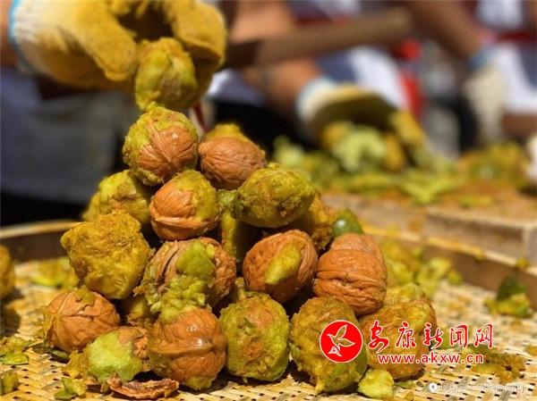 活動現(xiàn)場,伴隨著慶豐收的歡快鑼鼓聲,參加活動的機關干部同農民朋友一道走進核桃園區(qū),滿懷喜悅地從樹枝上采摘核桃鮮果。以核桃為主的富硒農副產品攤位前人頭攢動,一邊在上演農民朋友喜歡的精彩短小節(jié)目,一邊在緊張進行著核桃剝殼比賽,現(xiàn)場洋溢著喜慶核桃豐收的濃厚氛圍。啟動儀式上,發(fā)布了安康核桃產業(yè)發(fā)展成效,表彰了10名“安康核桃產業(yè)創(chuàng)新成果獎”獲獎者、12名“安康核桃樹王”所有權人。大家還共同見證了白河縣與江蘇等地客商的多個項目合作簽約。