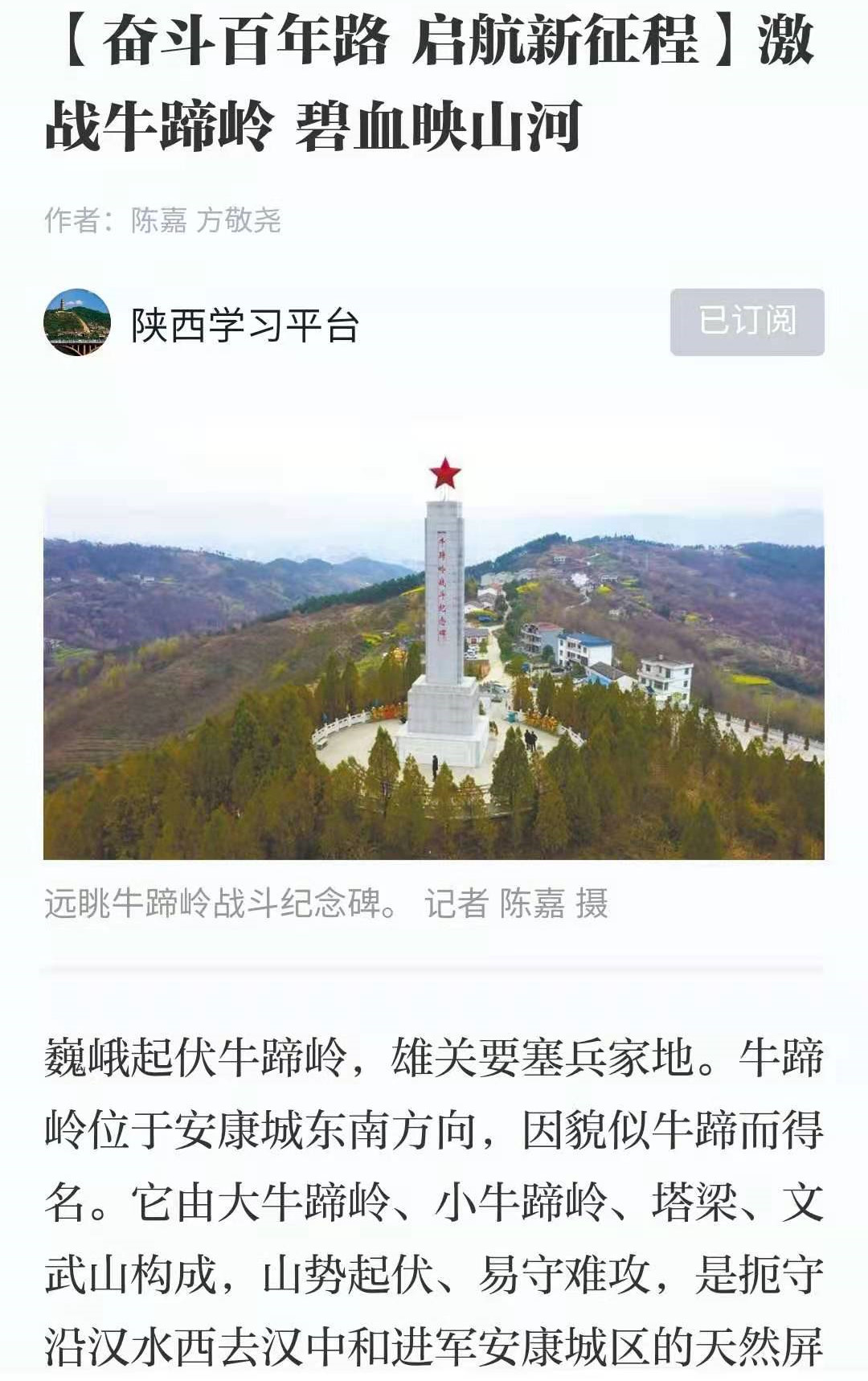 3月29日以來,《陜西日報》以《全省各部門各單位扎實推進黨史學(xué)習(xí)教育》為題,對我市舉行首場黨史學(xué)習(xí)教育專題報告會進行了報道。緊接著,“學(xué)習(xí)強國”推出了《陜西安康市漢濱區(qū):忠魂千秋耀山鄉(xiāng) 慷慨奮進著新篇》《激戰(zhàn)牛蹄嶺 碧血映山河》兩篇報道。陜西廣播電視臺、群眾新聞網(wǎng)、西部網(wǎng)集中播出我市策劃拍攝的《繼承廖乾五的革命精神 凝聚起百年奮進新征程強大力量》的主題報道。《市委常委班子在牛蹄嶺開展黨史學(xué)習(xí)教育》視頻新聞被新華網(wǎng)、陜西法制網(wǎng)轉(zhuǎn)載。