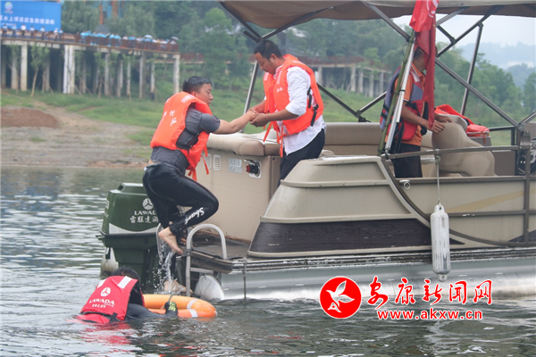 本網(wǎng)訊(記者 羅先安 實(shí)習(xí)記者 劉淵)6月25日,市十四運(yùn)競委會在瀛湖翠屏島南側(cè)公開水域成功舉行十四運(yùn)會水上項(xiàng)目應(yīng)急救援演練,以進(jìn)一步提高水上安全應(yīng)急救援能力,檢驗(yàn)水上交通應(yīng)對突發(fā)事件的快速反應(yīng)、應(yīng)急處置和協(xié)調(diào)作戰(zhàn)能力,確保十四運(yùn)會馬拉松游泳賽事萬無一失。省交通運(yùn)輸廳廳長、十四運(yùn)會組委會交通保障部部長夏曉中,市委常委、副市長劉建平現(xiàn)場觀摩了演習(xí)活動并分別講話、致辭。