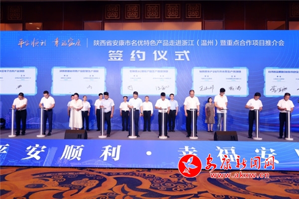 本網(wǎng)訊(記者 吳單)7月16日,市政府聯(lián)合省工信廳、商務(wù)廳共同主辦的“平安順利·幸福安康——陜西省安康市名優(yōu)特色產(chǎn)品走進(jìn)浙江(溫州)暨重點(diǎn)合作項(xiàng)目推介會”在溫州成功舉行。代市長武文罡、省工信廳副廳長劉波出席活動(dòng)并致辭,市委常委、宣傳部部長羅雪劍,副市長寇全安,市政協(xié)副主席孟平,安康市開放發(fā)展高級顧問楊堯成等參加活動(dòng)。