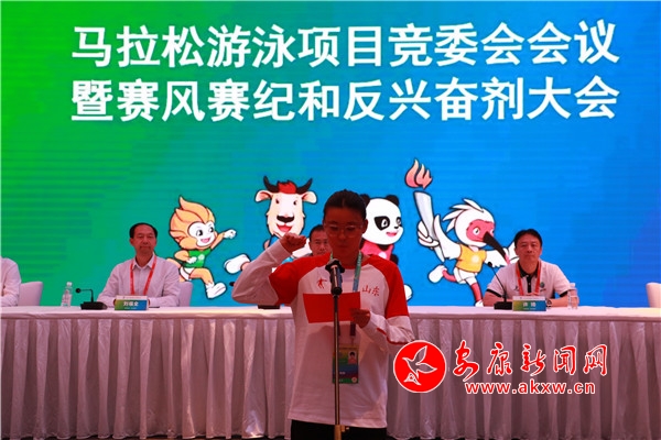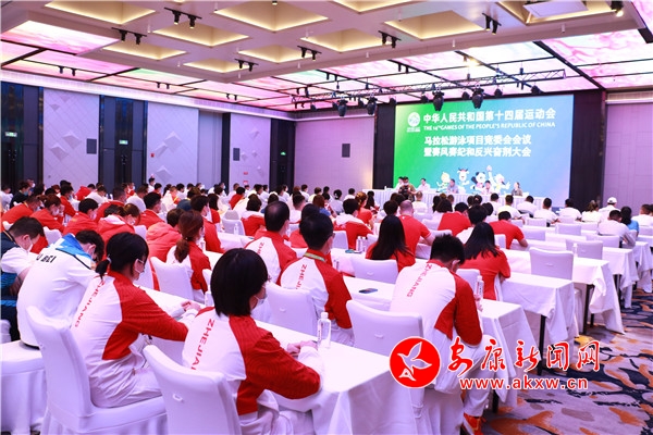 許琦宣讀了《第十四屆全國運(yùn)動(dòng)會(huì)賽風(fēng)賽紀(jì)違規(guī)處罰規(guī)定》、《第十四屆全國運(yùn)動(dòng)會(huì)賽風(fēng)賽紀(jì)和反興奮劑工作的通知》。運(yùn)動(dòng)員、教練員、技術(shù)官員代表進(jìn)行了反興奮劑宣誓,競委會(huì)各處室負(fù)責(zé)人、全體技術(shù)官員、各運(yùn)動(dòng)隊(duì)簽署了賽風(fēng)賽紀(jì)和反興奮劑承諾書。