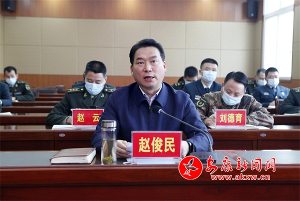 趙俊民強(qiáng)調(diào),要舉旗鑄魂強(qiáng)引領(lǐng),鞏固拓展黨史學(xué)習(xí)教育成果,持續(xù)深入學(xué)習(xí)貫徹習(xí)近平強(qiáng)軍思想,堅(jiān)決、全面、具體、無(wú)條件地貫徹軍委主席負(fù)責(zé)制,增強(qiáng)“四個(gè)意識(shí)”、堅(jiān)定“四個(gè)自信”、做到“兩個(gè)維護(hù)”,把堅(jiān)定捍衛(wèi)“兩個(gè)確立”落實(shí)到部隊(duì)建設(shè)實(shí)踐中,確保強(qiáng)軍興軍始終沿著正確方向前進(jìn)。要認(rèn)真落實(shí)新時(shí)代黨的建設(shè)總要求,嚴(yán)格落實(shí)《中國(guó)共產(chǎn)黨軍隊(duì)黨的建設(shè)條例》《中國(guó)共產(chǎn)黨軍隊(duì)委員會(huì)(支部)工作規(guī)定》,不斷增強(qiáng)各級(jí)黨組織的領(lǐng)導(dǎo)力、組織力、執(zhí)行力。要練兵備戰(zhàn)提能力,堅(jiān)持一切工作向能打仗、打勝仗聚焦,持續(xù)增強(qiáng)全民國(guó)防觀念,著力提高國(guó)防動(dòng)員能力,不斷加強(qiáng)民兵訓(xùn)練基地和民兵隊(duì)伍建設(shè),突出抓好實(shí)戰(zhàn)化訓(xùn)練,切實(shí)做到召之即來(lái)、來(lái)之能戰(zhàn)、戰(zhàn)之必勝。