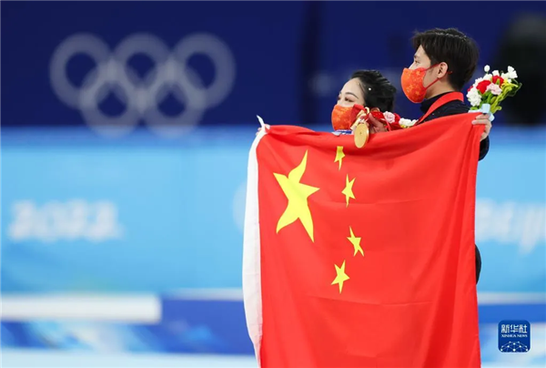 ▲2月19日晚,中國(guó)花樣滑冰選手隋文靜、韓聰獲得北京冬奧會(huì)雙人滑金牌。