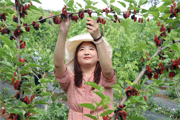 游客在池河鎮(zhèn)明星村醉美桑海博覽園采摘桑果
