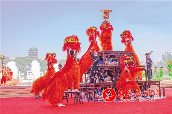 2006年,第七屆安康龍舟節(jié)上精彩的民間社火“翻天印”。張炳實 攝