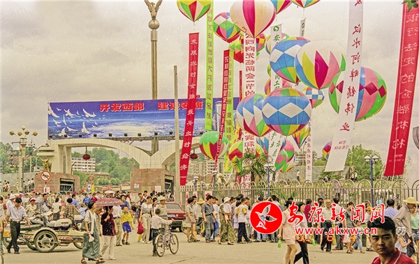 2004年,龍舟節(jié)系列活動的產(chǎn)品展銷會熱鬧非凡。金州南路和少年宮都被布置成了會場。 吳定國 攝