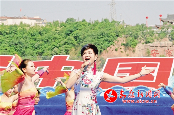 2013年第十三屆安康龍舟節(jié)開幕式上,安康籍國家一級演員陳俊華獻唱。 潘潤生 攝