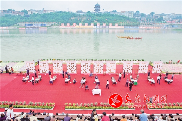 2009年第九屆安康龍舟節(jié)上,國家象棋特級大師柳大華與安康10位象棋高手進行盲棋車輪戰(zhàn)。 邵向東 攝