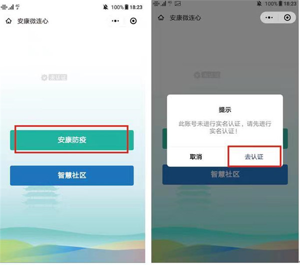 第一步,打開微信,搜索“安康微連心”小程序,點擊“安康防疫”,點擊“去認(rèn)證”。