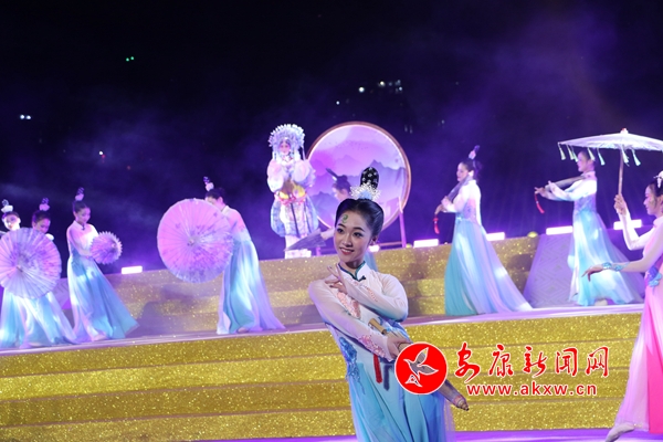粼粼波光微微風(fēng),樂舞燈火“靚”漢江。演出以絢麗奪目的燈光秀《多彩漢江》開場,漢江兩岸五光十色的燈光隨著音樂的節(jié)律不斷變換、舞動(dòng),使得一江兩岸如夢如幻、詩意盎然,動(dòng)感十足的爵士舞蹈《動(dòng)感安康》展現(xiàn)了安康的青春活力,原汁原味的本地歌舞《山歌不唱不開懷》《漢水旗韻》《荷包香安康》《漢江漁歌》《喬木花》《號(hào)子·龍舟》等以獨(dú)特的唱腔、曼妙的舞姿展現(xiàn)傳統(tǒng)漢水文化以及秦巴兒女勤勞淳樸的精神風(fēng)貌,熱情激昂的歌舞《母親安康》演唱出漢水兒女熱愛山水的樸素愿望和對美好生活的向往。演出期間,旅游形象大使還對紫陽、漢陰、嵐皋等縣區(qū)的特產(chǎn)、美食、旅游景點(diǎn)、傳統(tǒng)文化等進(jìn)行推介。