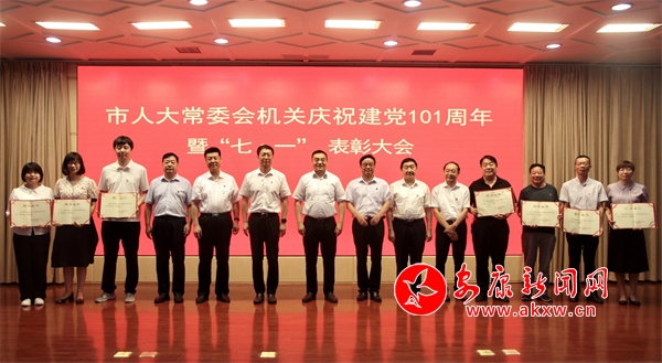 本網(wǎng)訊(記者 陸青波)在中國(guó)共產(chǎn)黨101周年華誕到來(lái)之際,6月27日,市人大常委會(huì)機(jī)關(guān)舉行慶祝建黨101周年暨“七一”表彰大會(huì)。市人大常委會(huì)黨組書(shū)記、主任王彪,黨組副書(shū)記、副主任鄭小東,黨組成員、副主任王孝成、趙立根,廳級(jí)領(lǐng)導(dǎo)羅萬(wàn)平、周永鑫,退休老領(lǐng)導(dǎo)王安信、田廣文、李隆毅,二級(jí)巡視員吳少華出席會(huì)議,秘書(shū)長(zhǎng)左自文主持會(huì)議。