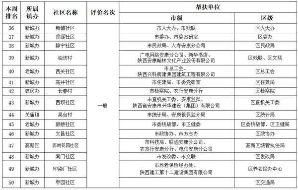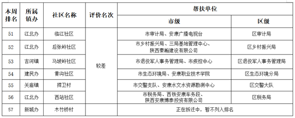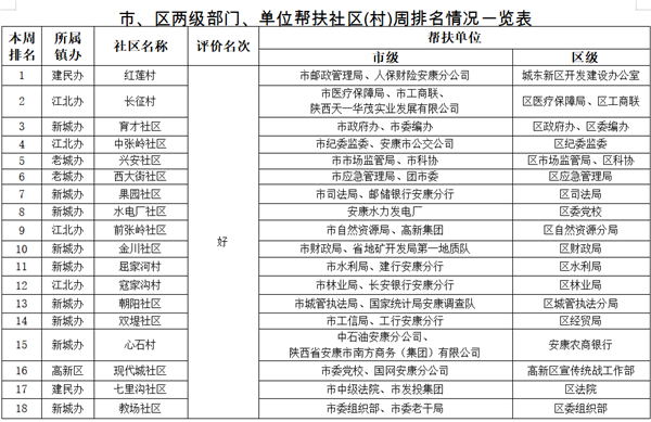 附件:市、區(qū)兩級部門、單位幫扶社區(qū)(村)周排名情況一覽表