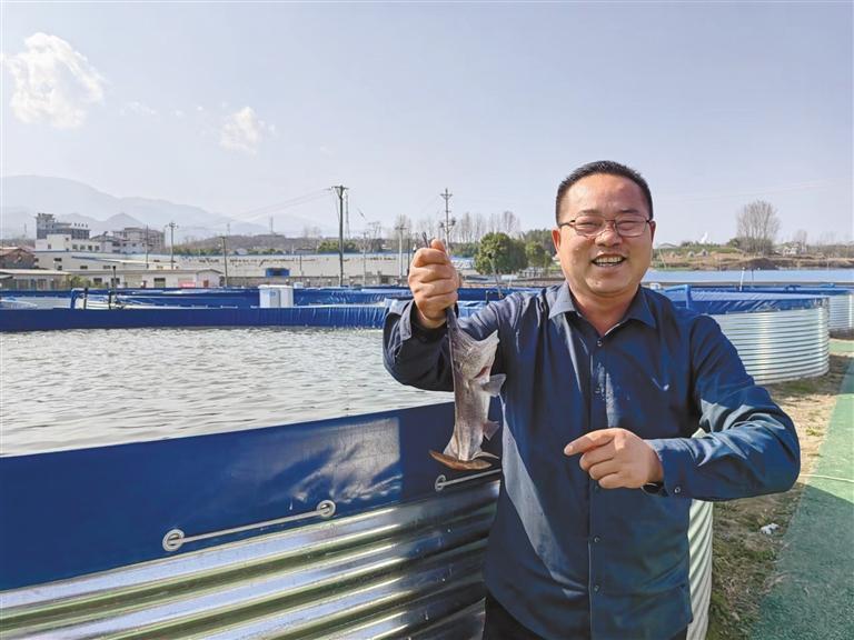 “2021年,我們村和鄰村的一家企業(yè)聯(lián)合發(fā)展?jié)O業(yè),我將自家的1.4畝閑置地流轉(zhuǎn)給軍壩村水產(chǎn)養(yǎng)殖基地,不僅每年有1000元的土地流轉(zhuǎn)收入,而且還被該基地聘為工作人員,月工資2500元。”謝祖勝說(shuō),“我管護(hù)的魚塘里有1萬(wàn)尾魚,我每天要給魚喂食4次,還要觀察魚是否受傷或有寄生蟲等。如果管護(hù)得好,公司每月再獎(jiǎng)勵(lì)我500元。”
