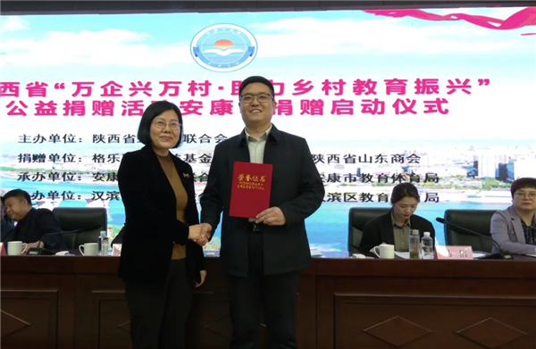 孟平代表市委、市政府向陜西省工商聯(lián)和捐贈方表示感謝,并向格樂國際公益基金管委會頒發(fā)了榮譽證書。她在講話中指出,希望各受助學(xué)校確保設(shè)備設(shè)施功能完好、后勤保障充分有序,服務(wù)教育教學(xué)、賦能人才成長,要引導(dǎo)廣大學(xué)生大力發(fā)揚滴水之恩、涌泉以報的反哺精神,崇文尚學(xué)、尊師重教的優(yōu)良傳統(tǒng),以實干實績書寫教育振興答卷。各級教育部門要以推進(jìn)教育強市為目標(biāo),用實際行動助推教育振興;各級“萬企興萬村”行動領(lǐng)導(dǎo)小組成員單位要廣泛動員社會各界協(xié)同作戰(zhàn)、傾力支持,積極搭建教育捐贈平臺,引導(dǎo)大家主動參與捐贈行動。
