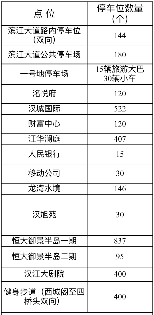 濱江大道沿線停車場(chǎng)開放信息表bn2安康新聞網(wǎng)