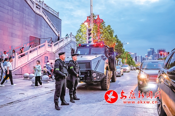 5月1日,西城閣執(zhí)勤的特警。 汪德珍 攝