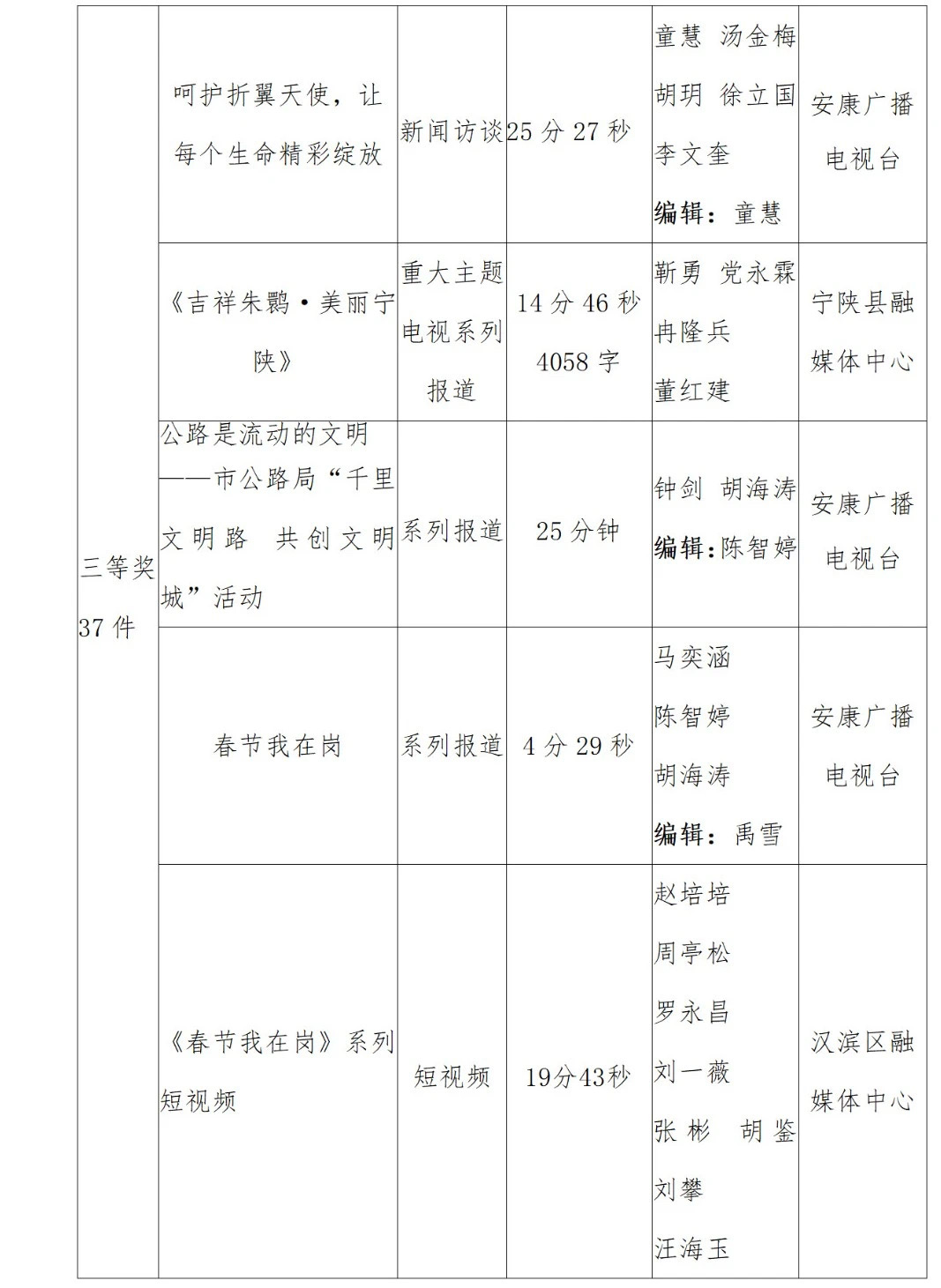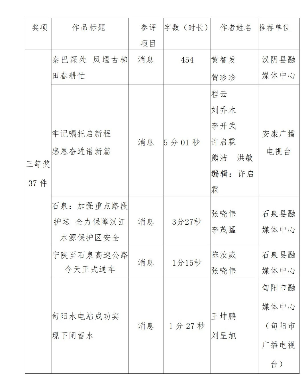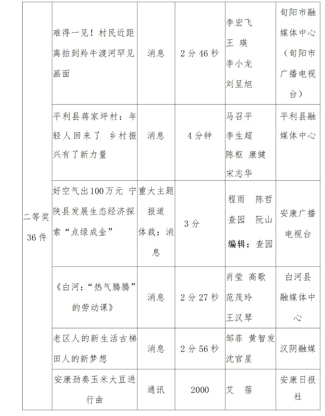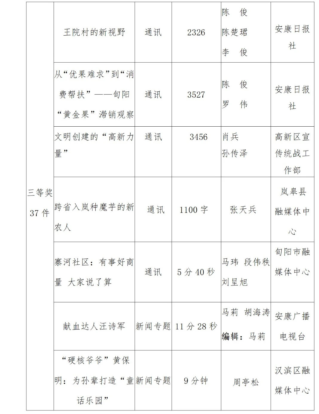 2022年度安康新聞獎(jiǎng)評(píng)審工作在中共安康市委宣傳部的指導(dǎo)下,由市記協(xié)具體組織實(shí)施,經(jīng)過各申報(bào)單位推薦、初審,市記協(xié)復(fù)審并組織專家定評(píng),評(píng)選出擬獲安康新聞獎(jiǎng)作品96件,其中一等獎(jiǎng)23件、二等獎(jiǎng)36件、三等獎(jiǎng)37件。擬授予姚登等14名同志“安康市優(yōu)秀新聞工作者”榮譽(yù)稱號(hào)。